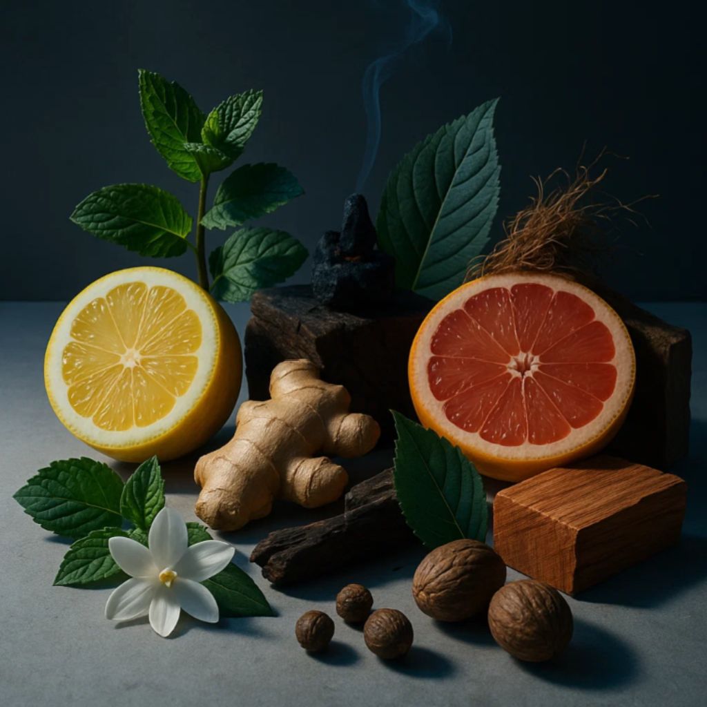 Formule_bleue_c_508 est une fragrance élégante et intemporelle qui s’ouvre sur la fraîcheur éclatante du citron, de la menthe et du pamplemousse. Le cœur aromatique révèle des notes de gingembre, de jasmin et de noix de muscade, apportant énergie et modernité. Enfin, le fond sophistiqué de bois de santal, de patchouli, d’encens, de vétiver et de cèdre diffuse profondeur et intensité.