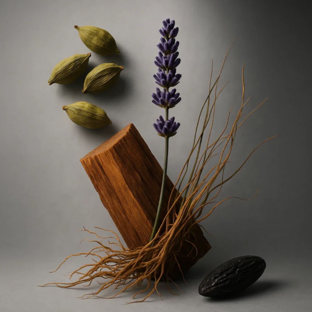 Formule_nuit_503 est une fragrance sensuelle et mystérieuse qui s’ouvre sur la fraîcheur épicée de la cardamome. Son cœur mêle l’élégance de la lavande à la douceur boisée du cèdre, créant un équilibre raffiné. Enfin, le fond chaleureux et enveloppant de vétiver et de fève tonka diffuse une intensité magnétique.