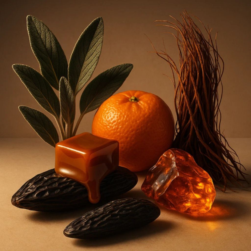 Formule_scandal_510 est une fragrance virile et addictive qui joue sur les contrastes. L’ouverture énergique associe la sauge et la mandarine pour une fraîcheur vive et immédiate. Le cœur gourmand se révèle à travers des notes de caramel et de fève tonka, apportant sensualité et intensité. Enfin, la base puissante de vétiver et d’ambre laisse une empreinte masculine forte et magnétique.